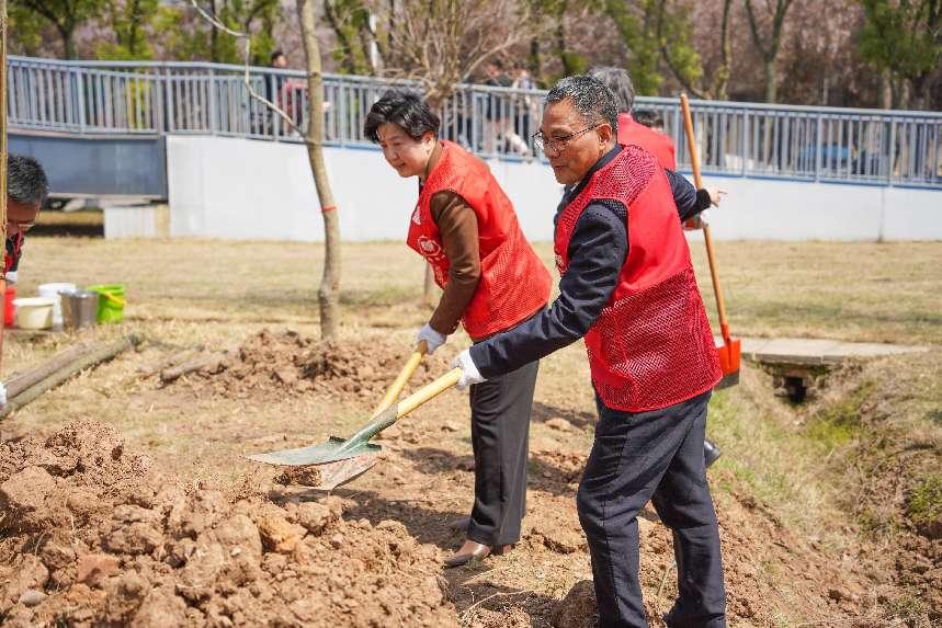 漆昌柱指出,共植“同心林”象征团结与希望。此次活动不仅为校园增添绿色风景,更将“爱国、革命、团结、奉献”的黄埔精神与我校“厚德、博学、力行、致远”校训相结合,激励师生传承爱国情怀,勇担时代使命。希望“同心林”成为育人课堂,助力学生成长成才,为强国建设和民族复兴贡献力量。