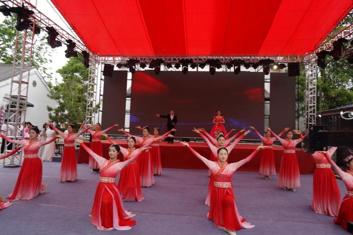 在五一期间的每日清晨,我校师生早早来到江柳摇村,通过60余人的歌舞巡游,6个传统、民族和现代舞蹈,一路吸睛,将驻足、出行的市民和游客带到主舞台,通过充分展示传统艺术的婉转韵味与现代艺术的跃动活力的节目演出。