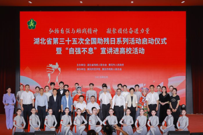 本网讯 5月13日,湖北省第35次全国助残日系列活动启动仪式暨“自强不息”宣讲进高校活动在我校举行。省残联党组书记、理事长程武,省残联党组成员、副理事长袁雪梅,黄冈市副市长王健,校党委副书记、校长漆昌柱,党委副书记陈朝阳等出席活动。