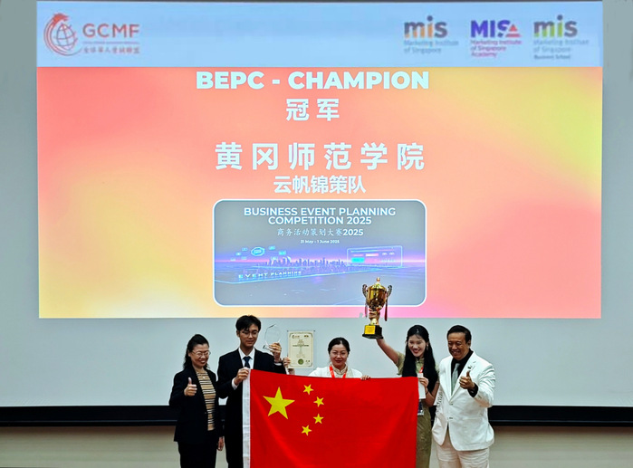 自2024年5月起,我校“云帆锦策队”从最初全国756所高校、1.2万支队伍中,历经知识赛、校赛、省赛、国赛、精英赛,一路披荆斩棘、脱颖而出获得国际赛资格,最终代表中国站在国际最高领奖台,充分展示了我校学子良好的精神风貌和我校在人才培养方面的突出成果,扩大了学校的国际影响力。商务活动策划大赛连续举办十多年,这是中国选手在该赛事中第二次夺冠,更是黄师学子首次在国际舞台摘得桂冠。