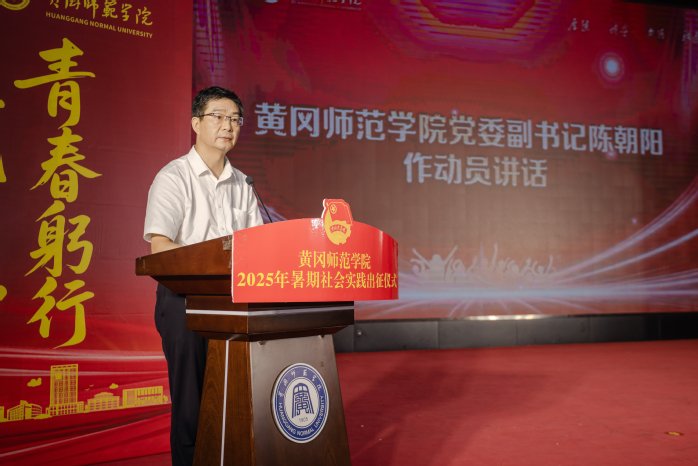 本网讯 6月10日下午,2025年暑期社会实践出征仪式在南区厚德楼学术交流中心成功举行。校党委副书记陈朝阳出席仪式并讲话。黄冈市相关部门、各县市区团委、各乡镇、街道、社区实践工作负责人及在黄高校参加出征仪式。